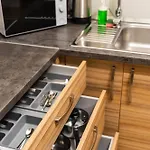 - ❓Existe uma cozinha disponível em apartamento Ozo Park City Center apartamento para uso dos hóspedes?Sim, apartamento Ozo Park City Center apartamento está equipado com cozinha e oferece microondas, chaleira elétrica e refrigerador.